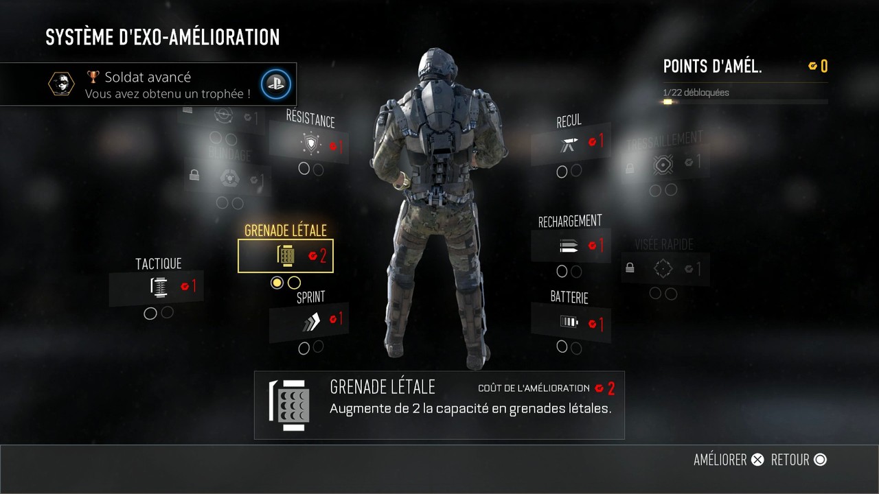 Les Call Of Duty sont connu pour leurs multi, et ce Call Of Duty : Advanced Warfare ne déroge pas à la règle. On retrouve donc les fameux modes classiques de COD, avec leurs variantes mais également des nouveautés, les modes Uplink et Momentum.Le mode Uplink est un mode ou chaque équipe dispose d’une zone de but, et les deux factions doivent agir en groupe pour récupérer un objet au centre de la carte et l’envoyer dans le « but adverse ». Il sera possible de faire des passes et même d’envoyer la balle sur un ennemi afin que ce se retrouve en mauvaise posture face à vous, puisque vous récupérerez votre arme automatiquement. Ce mode est pour le belle surprise de ce multi, qui je pense plaira à de nombreux joueurs. Quand au mode Momentum, il s’agit ici de vous placez dans une capture successive de zones de conflit. Vous devrez avec votre équipe récupérer point par point, les zones de conflits comme vos adversaire, ce qui génère des affrontements intenses. Des changements de situation seront assez fréquents puisque même si certaines batailles seront difficile à gagner donc seront plus rapide grâce à une bonne cohésion d’équipe. Je ne parlerai pas des autres modes, car ils sont connus de tous.