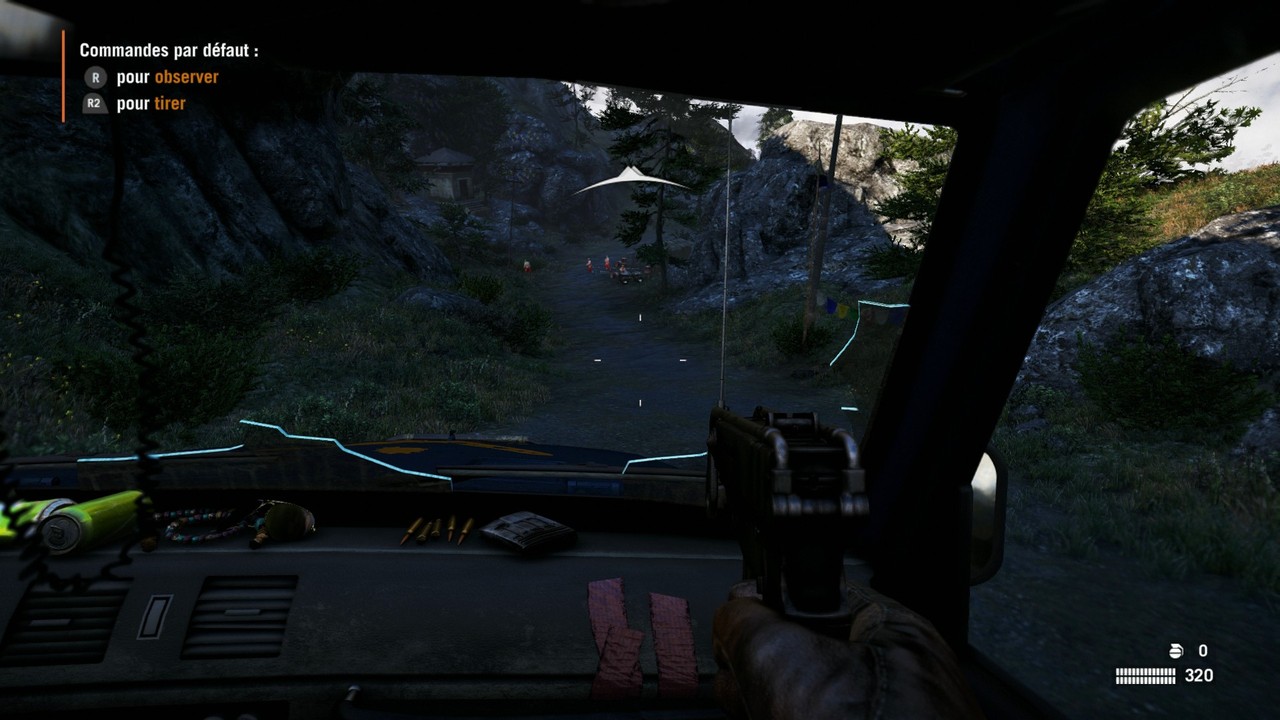 Eh bien, le gameplay est similaire à celui de Far Cry 3, puisque les mouvements, les animations, les takedowns, les mécaniques de craft et de skill sont exactement les mêmes. Ne vous inquiétez-pas, il y a des nouveautés qui font leur apparition. Il est désormais possible de tirer tout en conduisant, d’activer un pilote automatique pour viser, par exemple. De plus, Ubisoft a rajouté de l’escalade dans ce titre. Une bonne idée, puisque grâce à cela, vous pourrez visitez des zones inexplorées. C’est ce qui fait la force de l’open world de Far Cry 4. Vous pouvez, et ce dès le début de l’aventure, évoluer librement dans la nature.