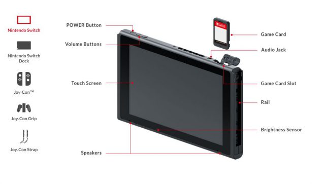 Cette toute nouvelle console est une console hybride, puisqu’elle peut passer d’une console salon à une console portable. En effet, l’écran centrale est entouré de deux manettes (les Joy-Con) détachables, et être ainsi emporté partout. De plus, comme on pouvait s’y attendre la Switch utilise des cartouches.