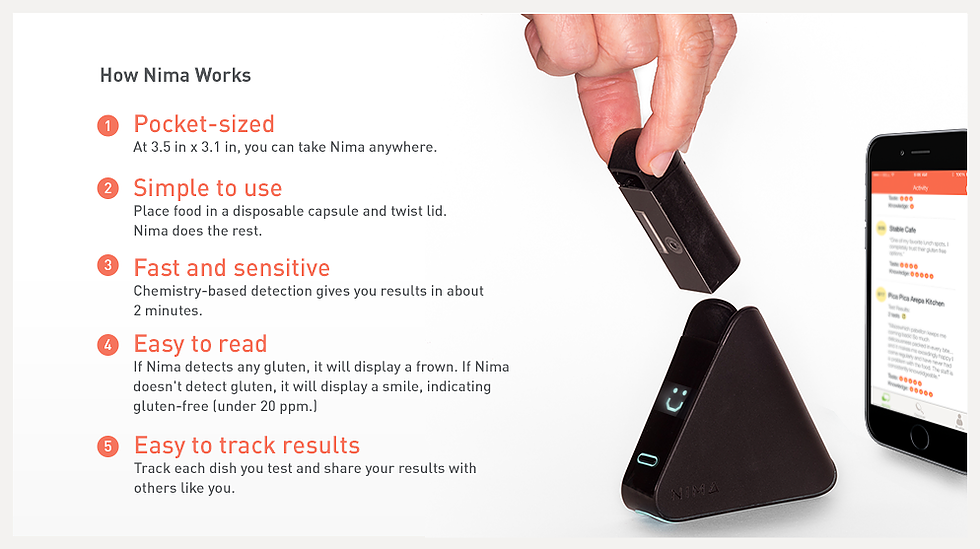La société 6SensorLabs, nous a dévoilée Nima, un détecteur portable qui permet voir si oui ou non, il y a du gluten dans les aliments que vous mangez en 2 minutes.