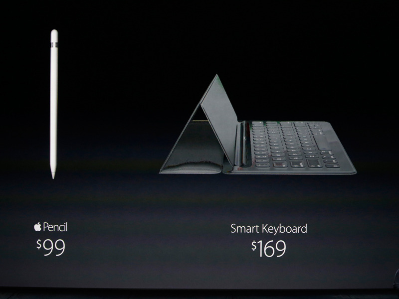 Grosse surprise, Apple annonce un clavier officiel conçu spécialement pour ce nouvel iPad. Fonctionnant comme le clavier de la Surface Pro, le clavier se connecte via le « Smart Connecter », capable de transférer de la batterie ainsi que des données de l’iPad aux claviers.