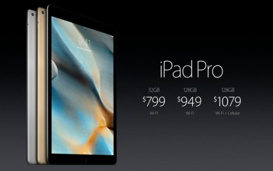 L’iPad Pro sera disponible en 3 coloris (silver, gold et space grey) et sera aux prix de 799$ pour la version Wifi 32 Go, 949 $ pour la version Wifi 128 Go. Enfin, le modèle 4G 128 Go l’iPd 1079$.