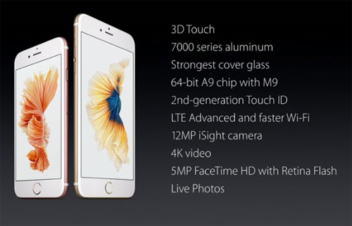 Ce n’est pas tout, puisque un nouveau capteur photo arrive, avec 12 millions de pixels contre 8 auparavant avec comme promesse une meilleure gestion de l’exposition. Il sera également possible d’enregistrer des vidéos en 4K. En façade, on retrouve une capteur FaceTime HD de 5 millions de pixels avec un “Retina Flash”. Enfin la 3D touch, la technologie de l’Apple Watch arrive sur l’iPhone.