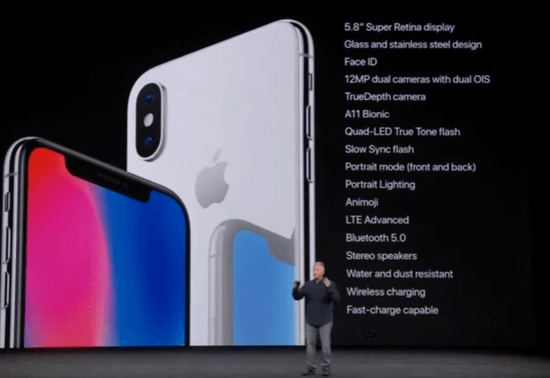 L’iPhone X possède lui aussi tout comme les iPhones 8 et 8 Plus une d’une coque en verre et d’un double capteur photo. Le double capteur photos disposera d’une stabilisation optique. De plus, les annonces sur la réalité virtuelles faites sur la présentation de l’iPhone 8 et 8 Plus seront également présent. Enfin, l’iPhone X sera le seul de la gamme à proposer le mode portrait sur sa caméra frontale. Grâce à cette coque en verre, l’iPhone X pourra se recharger sans fil via le standard Qi. Apple va d’ailleurs proposer un grand pad de recharge pour accueillir un iPhone X, une Apple Watch et un nouveau boitier de recharge sans fil pour les AirPods en même temps. Une fonctionnalité nommée Air Power.