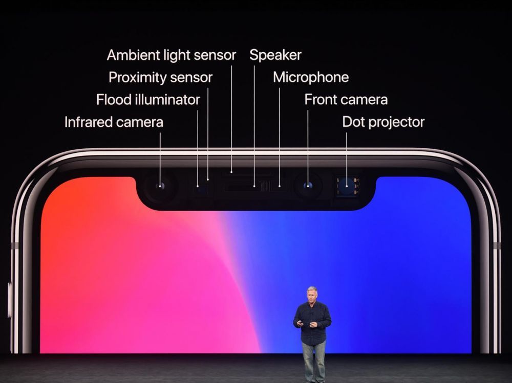 Autre nouveauté grâce à cette écran, l’apparition du Face ID qui remplace le capteur d’empreinte Touch ID, une révolution puisque le Touch ID était présent depuis l’iPhone 5S. En effet, même si l’iPhone X a des boutons physiques sur les tranches, il ne possède plus de bouton physique Home. Ainsi, le Face ID une fonctionnalité de reconnaissance faciale à été mis en place pour cette iPhone. Selon Apple, cette reconnaissance serait la plus sécurisée jamais intégrée à un téléphone jusqu’à présent puisque selon la firme seul 1 personnes sur 1 million pourrait débloquer le téléphone.