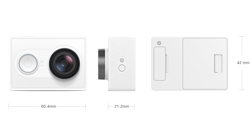 La Yi Camera est capable de filmer en Full HD a 60 images secondes. De plus, elle dispose de 64 Go de mémoire, son poids et de 72 grammes et ses dimensions de 60,4 x 42 x 21,2 mm.