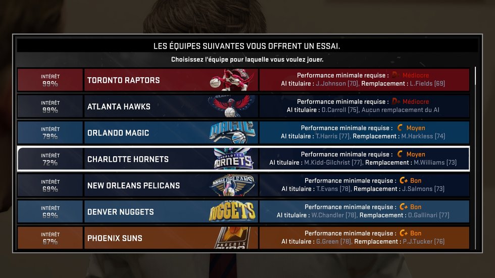 Dans ce NBA 2K15, vous pourrez toujours créer un joueur et faire une carrière NBA avec lui. Votre carrière, sera cependant scénarisée, même si vous aurez la possibilité de répondre aux questions, et de prendre certaines décisions concernant votre carrière. Tout cela sera réalisé avec des scènes, qui seront quelque fois pas à la hauteur de nos attentes. De plus, on note quelques bugs, des erreurs de traductions dans les sous-titres, et cela ce répercute également dans les matchs commentés par Ernie Johnson, Shaquille O’Neal, Doris Burke et surtout le duo Harlan-Kellog, on note que Steve Kerr est toujours la alors qu’il est désormais le coach des Warriors. Même si cela rend les matchs plus passionnant, les dialogues entre les commentateurs sont assez mal réalisés, ce qui rend le mode moins appréciable à jouer.