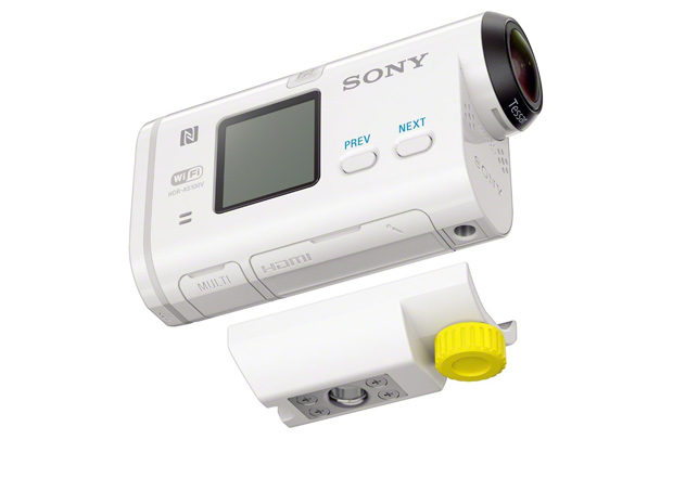 Rappelons que la Go Pro est une petite caméra d’action utilisée pour le sport. Malgré déjà une tentative de Sony avec sa AS30 qui a été peu convaincante, Sony récidive donc avec l’AS100. L’AS100 possède désormais un capteur CMOS rétro-éclairé 1/3 pouce avec 18 megapixels. On pourra exporter les vidéos en format XAVCS, de plus la caméra dispose d’un mode couleurs neutres et une fonction timecode pour synchroniser les plans enregistrés simultanément par plusieurs caméras. L’AS100 n’a pas besoin de caisson pour aller sous l’eau car elle est étanche. Enfin, la caméra dispose du Wifi et également du NFC qui permet d’être utilisé par un smartphone ou une montre, qui permet alors de contrôler jusqu’à 5 caméras.