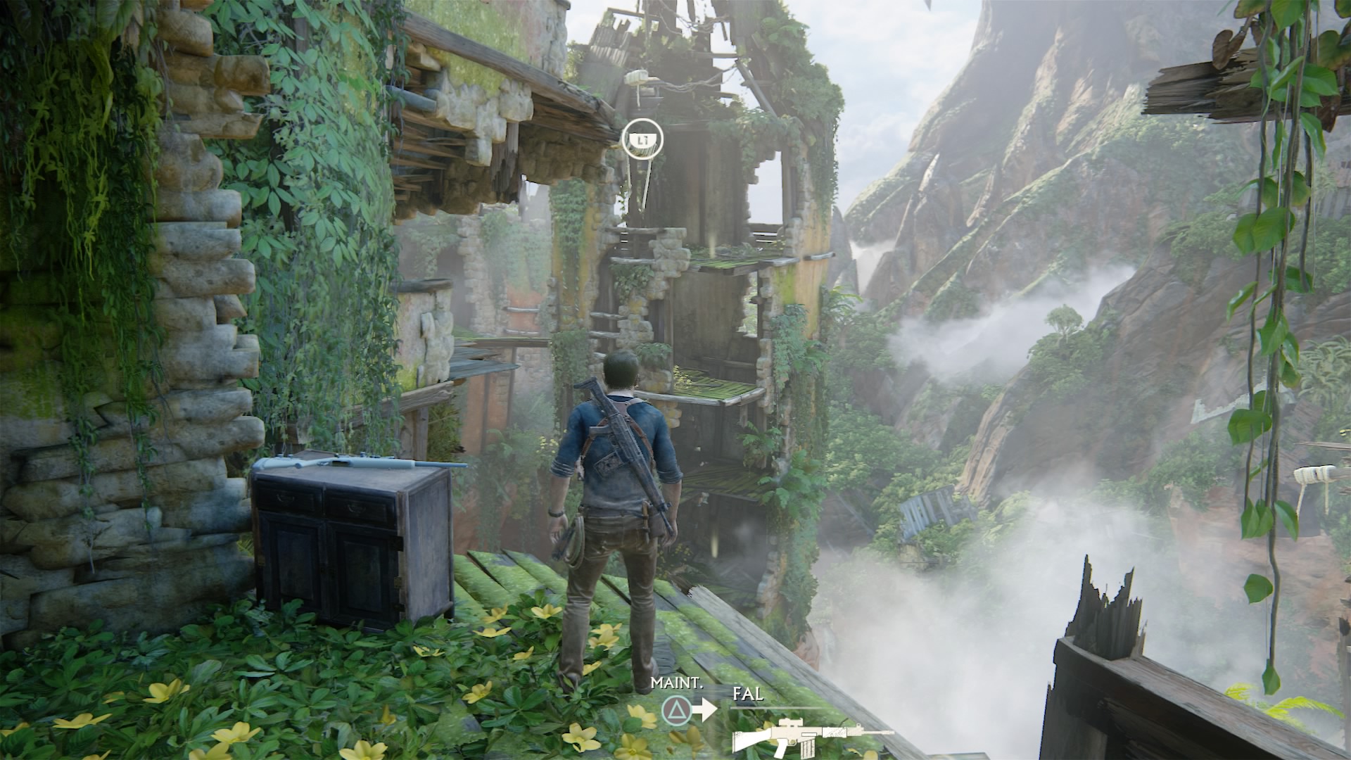 D’autres nouveautés sont de la partie concernant le maniement de Nathan Drake, toujours capable d’escalader une paroi et de sauter d’une corniche à l’autre. Il peut désormais s’adonner aux plaisirs de la glissade sur les pentes, un mécanisme souvent combiné à d’autres pour varier les plaisirs durant les nombreuses phases du jeu. Mais également la possibilité d’agripper les prises uniquement en déplaçant le bras libre de Drake. Cependant cette fois, Nathan se voit voler la vedette par une nouveauté le grappin. Que soit de sauter sur un ennemi pour lui en coller une ou juste se balancer au dessus du vide pour atteindre un endroit, le grappin est un allié parfait pour notre héros. Le grappin est donc libre d’utilisation à la seule condition de trouver un point d’accroche viable. Ne pensez que parce que le grappin fait son arrivé que tout va être facile, en effet il est tout à fait possible de rater son saut à cause d’un timing imparfait ou d’une prise d’élan insuffisante, voire d’un mauvais positionnement au niveau de la corde. Les plus attentifs pourront tout de même déceler quelques tours de passe-passe délivrés par Naughty Dog, que nous vous laissons découvrir.
