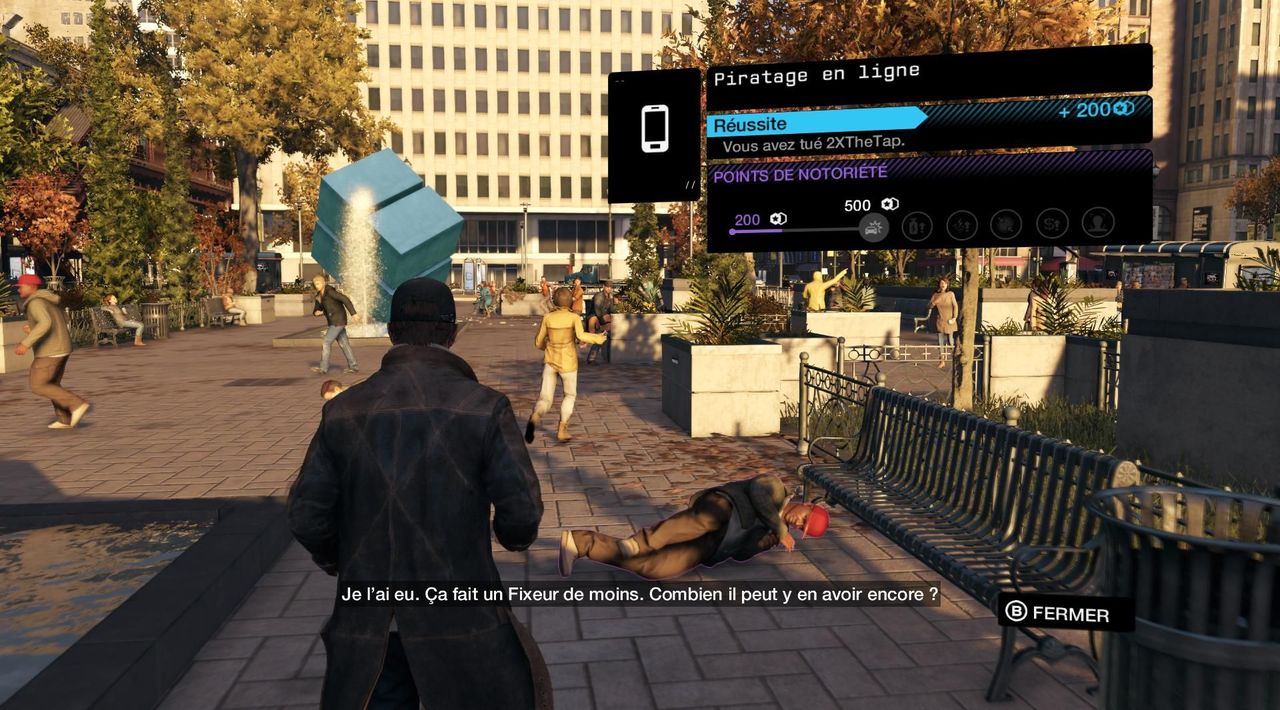En ce qui concerne les habitants de Chicago, ils vivent leurs vies et vont à leurs occupations, vous pourrez obtenir leurs informations lorsque que vous activerez votre profiler et ainsi hackés certains d’entre eux. Cependant, leurs actions dépendront des choix d’Aiden. Vous aurez le choix d’être dans le coté obscur de la force ou au contraire être le héros de Chicago.
