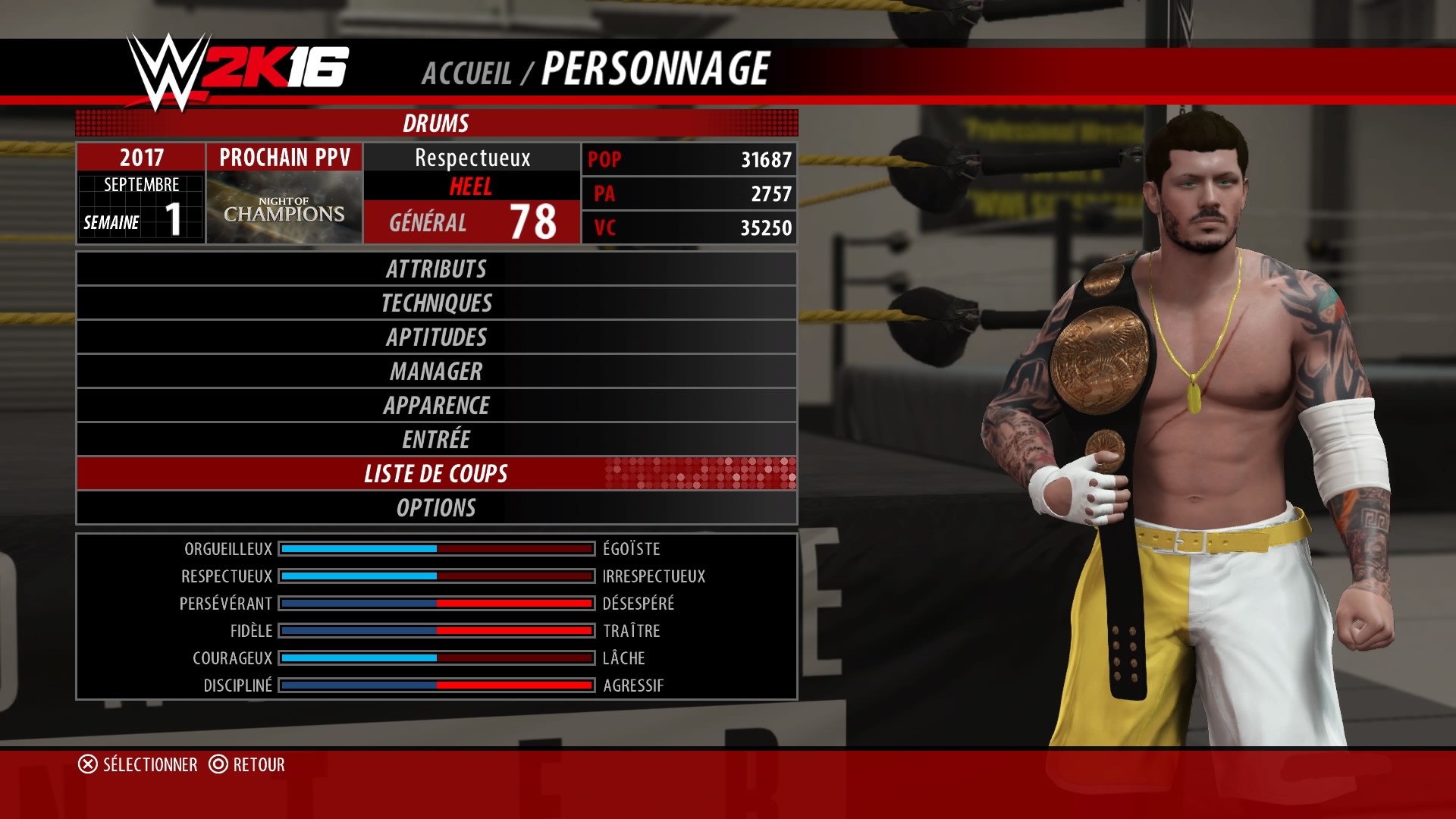 WWE 2K16_3Après obtenir le titre , vous pouvez le laissez vacant pour entrée dans la course au titre de votre choix (dans mon cas le titre Tag). Même si vous pouvez restez a NXT pour le reste de votre carrière en tentant de conservez votre titre le plus longtemps possible et de ce fait entrez dans l’histoire de NXT .
